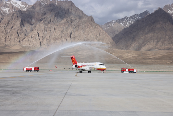 我国高高原机场第一次迎来国产飞机定期航班
